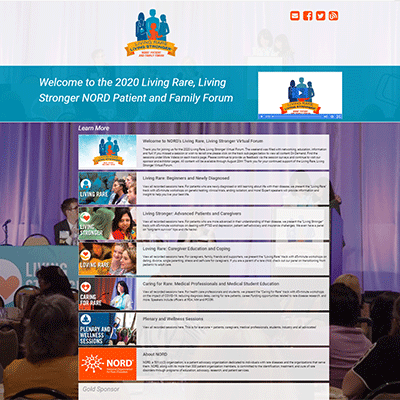The COVID-19 pandemic has disrupted many plans in 2020, and the National Organization for Rare Disorders’ (NORD) Living Rare Living Stronger Conference looked like it would be no different. Patients, caregivers, and medical professionals from around the country look forward to this meaningful weekend every year. Instead of postponing, NORD found a solution to provide the rare community a safe online alternative to their in-person summit by leveraging a leading digital platform specializing in online events.