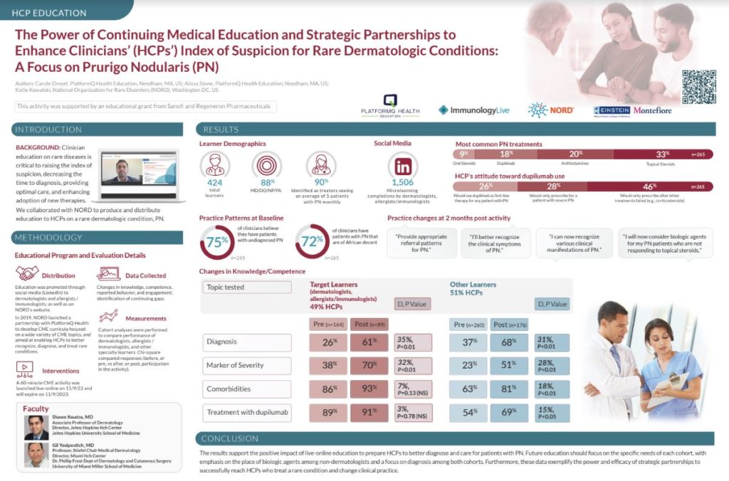 Education about rare diseases is crucial to reducing time to diagnosis and providing optimal care for patients. Recently, PlatformQ Health worked with our strategic partner the National Organization for Rare Disorders (NORD) to produce digital education for health care providers (HCPs), focused on the rare dermatological condition prurigo nodularis.