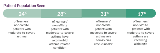 - 65% of CME learners reported that they treated an average of nine non-White patients with asthma each week.